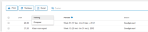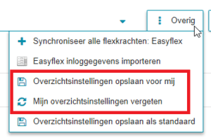 Each overview consists out of standard columns. Besides these standardly shown columns, there is also a number of hidden columns. You can either hide or add columns to the overview to arrange the overview to your own desires. You can also save these settings, so you always have access to your own wanted overviews. We advise you to add the ‘Tarief’ and ‘Wage’ columns directly to your overview.